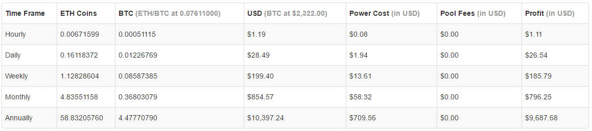 Monthly Earning: 796.25$ || Electricity Cost: 58.22$ || Monthly Profits: 738.03$